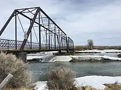 The ETR Big Island Bridge is a Pratt through truss bridge located near Green River, Wyoming, which carries Sweetwater County Road CN4-4 across the Green River. The bridge was built from 1909 to 1910 by contractor Charles G. Sheely. It was named the Big Island Bridge after the Big Island region of Wyoming, which the bridge connected to other parts of the state. The 352-foot (107 m), two-span bridge is one of the older Pratt through truss bridges in Wyoming, and its spans, each 155 feet (47 m) long, are some of the longest on bridges of this design in the state.[2]