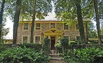 The three-part house consists of a tall, 2+1⁄2-story 5-bay Georgian portion and two long 1+1⁄2-story portions. The newest portion, the garage wing, incorporates timbers salvaged from the old slave quarters before the flooding of the valley in order to create Loch Raven Reservoir. The house features a profusion of original detail including the fine main entrance, the interior woodwork, the original arcade, period outbuildings including the smokehouse, icehouse, springhouse, and root cellar.[2] Foundation ruins of the barn, tenant farmer's house, and tollbooth still stand, though now on neighboring properties.