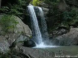 Eagle Falls is located in Cumberland Falls State Resort Park in McCreary County, Kentucky, United States.[1] Water from Eagle Creek descends 44 feet (13 m) before landing on the rocks below on the Cumberland River shoreline. Eagle Falls can be accessed by hiking Trail 9 located on Kentucky Route 90 in the Cumberland Falls State Park. The trail to Eagle Falls is 2.5 miles one direction(2.4 km) and includes some of the best views of Cumberland Falls.