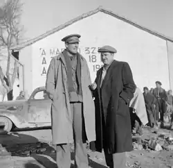Browder applied for a visa to travel to Moscow to appeal his expulsion, but he was forced to wait two months for its approval.[78] In the meantime he continued to issue his Distributors Guide, which became explicitly more pro-Stalin and pro-Soviet in later issues.[78] With his visa finally approved, Browder ended publication of his newsletter at the end of April 1946. The former American party leader departed for the Soviet Union to determine whether his expulsion could be overturned.[78] Browder arrived in Moscow on May 3 and met with old friends, including Solomon Lozovsky, former head of the Profintern, as well as Stalin's right-hand man, Viacheslav Molotov.[79]