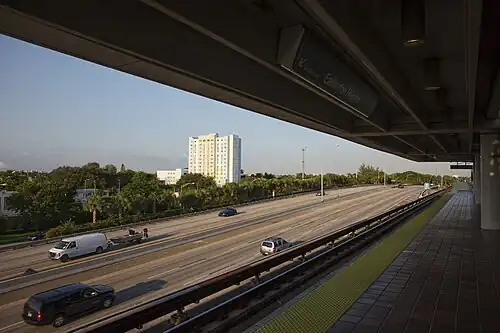 The Airport Expressway and Allapattah, as seen from the station platform