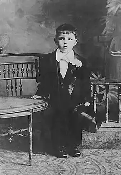 In 1920, Prohibition of alcohol became law in the US. Dolly and Marty ran a tavern during those years, allowed to operate openly by local officials who refused to enforce the law.[22] Kaplan notes the possibility that the Sinatras procured their liquor from members of the American Mafia. They purchased the bar, which they named Marty O'Brien's, with money they borrowed from Dolly's parents. When they were busy with the tavern, Sinatra was watched by relatives and sometimes a Jewish neighbor named Mrs. Goldberg, who taught him Yiddish.[33] When Sinatra was six, his uncle Babe, Dolly's brother, was arrested for driving a getaway car after a Railway Express truck driver was murdered. Though Dolly attended his trial daily and attempted to evoke sympathy, her brother was convicted and sentenced to prison for 15 years.[34] Other family members had minor clashes with the law; Sinatra's father and uncles had been arrested for assorted minor offenses.[35] Sinatra later recalled spending time at the bar, working on his homework and occasionally singing a song on top of the player piano for spare change.[36] During the Great Depression, Dolly provided money to her son for outings with friends, and for him to buy expensive clothes.[37] He also earned pocket money by singing on street corners.[38] Neighbors described him as the "best-dressed kid in the neighborhood" and the "richest kid on the block", aided by the fact that he was an only child, and had his own bedroom.[39] According to Kaplan, Dolly doted on her son, but she also abused him when he angered her, hitting him with a small bat she kept at Marty O'Brien's.[40] Excessively thin and small as a child and young man, Sinatra's skinny frame later became a staple of his own jokes and those of the Rat Pack members during stage shows, one self-effacing joke being: "A little kid, skinny. So skinny my eyes were single file. Between those two and my belly button my old man thought I was a clarinet".[41]