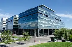 The area includes a 130,000-square-metre (1,400,000 sq ft) office and institutional zone on the dockside tract of East Bayfront. This section consists of the 42,000-square-metre (450,000 sq ft) Corus Quay and the George Brown College's Health Sciences Campus.
