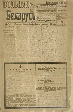 The process of spreading Belarusian national sentiment in eastern Belorussia began in earnest after the February Revolution. Jazep Losik established Volnaja Bielarus on 28 May 1917 as an eastern equivalent to the Vilnius-based Nasha Niva. The development of Belarusian nationalism in eastern Belorussia was also influenced by theatre, an effort supported by Belarusian nationalist leader Anton Luckievich.[3]