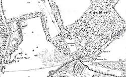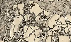 William Hillman jr. married Hannah Clarke, daughter of the mathematician John Clarke, in January 1743.[11] He was resident at East Close in the 1750s,[12] and was one of the subscribers who sponsored Taylor's 1759 map.[2] East Close was worth at least £100 per annum in 1761, qualifying Hillman to serve as a Justice of the Peace,[13] although from 1764 until 1771 he lived instead at Ashe Park in north Hampshire.[14] He spent much of 1771 visiting Paris and Lausanne with his wife and son.[15] This son and heir, Edward, sold the 720-acre estate to Sir Jacob Wolff for £4,000 in 1786.