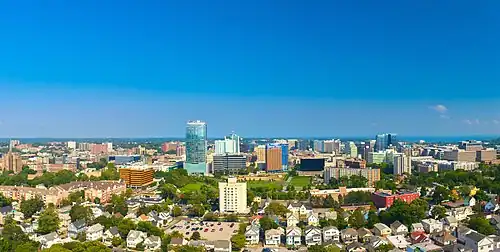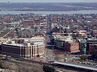 The East Coast, with the exception of eastern Maine, is a low relief, passive margin coast.[9] It has been shaped by the Pleistocene glaciation in the far northern areas in New England, with offshore islands such as Nantucket, Martha's Vineyard, Block Island, and Fishers Island. From northern New Jersey southward, the coastal plain broadens southwards, separated from the Piedmont region by the Atlantic Seaboard fall line of the East Coast rivers, often marking the head of navigation and prominent sites of cities.