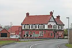 The parish church of Holy Trinity was built by Charles Ward of Lincoln between 1853 and 1854, to a design by William Butterfield. The work was commissioned by the William Dawnay, 7th Viscount Downe, and the west end is thought to be modelled on the church at Lindisfarne (Holy Island) in Northumberland. It is now a Grade II listed building.[1] Dawnay's commission also included the vicarage[2] and the Church of England primary school, together with its schoolhouse, all of which are Grade II listed. Similar clusters of buildings were erected at Hensall and Pollington.[3]