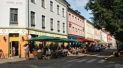 From 1970 there were protests against the tearing down wooden house areas such as Kampen and Rodeløkka, and young people with higher education moved in and took it upon themselves to improve the areas. From 1980, the municipality started a renovation of the city, where apartments were renovated to modern standards, and a few were dismantled. Inner yards were cleaned and made into gardens, and facades were cleaned.[21] This diminished the negative trend. Handlingsprogram Oslo indre øst (Action Programme for the Oslo Inner East)[22] was put into use from 1997 to 2006, with a renovation of public spaces and many other improvements to the citizens' living standards.