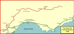 The East Fife Central Railway was a mineral railway line in Fife, Scotland, that ran from near Leven to Lochty. It was built to develop extensive coal measures in the area. The line was completed by the North British Railway and it opened in 1898.
