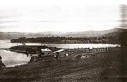 The site where East Gosford now stands changed hands twice before being sold to Samuel Peek, a Sydney tea merchant. East Gosford was surveyed in 1841 and within a year, began to develop, when Peek began to sell land there. A wharf and several shops were built.[6] After building a three-story hotel, Peek and his family went to England in 1850. Returning in 1857, their ship wrecked near the Gap, and all family members perished.[7] Many of his private papers were lost in the wreck, and he left no heirs, so many of his buildings decayed with bricks, doors and woodwork disappearing.[8]