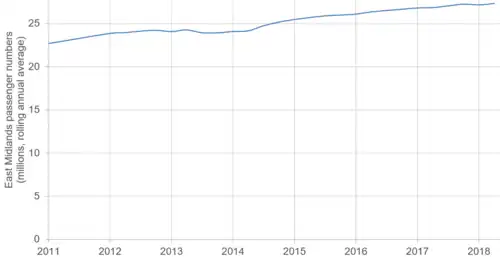 - ^ "Display Report - Office of Rail Regulation - National Rail Trends Portal". dataportal.orr.gov.uk. Office of Rail and Road. Retrieved 21 October 2018.