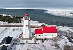 It is the dividing point for delineating the eastern limits of the Northumberland Strait. Its shores consist of dramatic high sandstone cliffs. The Canadian Coast Guard maintains a lighthouse as a navigational aid beacon.
