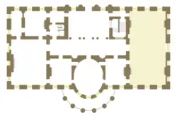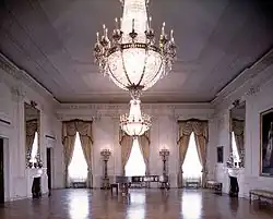 Jefferson's successor, James Madison, sought to make the partitions permanent and asked Latrobe to design bedrooms and office space across the southern part of the room. But these changes were not made, either.[13] Madison did use a portion of the East Room, however, for Cabinet meetings.[14]