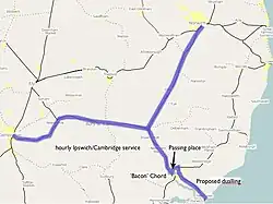 - "Eastern section" from Cambridge to Norwich, Felixstowe and Ipswich on existing lines.