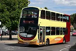 As of 15 July 2021, the East Yorkshire fleet consists of 271 buses and coaches operated from seven bus depots across East and North Yorkshire: Bridlington, Elloughton, Kingston upon Hull, Pocklington, Scarborough (Barry's Lane and Westwood Road) and Withernsea.[55] The company's bus fleet consists mainly of diesel-powered single and double-deck buses manufactured by Alexander Dennis and Volvo; £5.7 million of funding awarded jointly to Hull City Council and East Riding of Yorkshire Council through the central government's Zero Emission Bus Regional Areas 2 (ZEBRA2) fund, as well as a £500 million investment in Wrightbus battery electric buses by the Go-Ahead Group, will see a fleet of 21 electric buses delivered to East Yorkshire during 2025.[56][57]