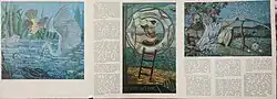 The Easterhouse mosaic was created in the early 1980s by the local community, co-ordinated by the revolutionary community arts organisation, Easterhouse Festival Society. The mosaic was located on Lochend Road.[82] It covered 1,500 sq ft (140 m2), making it (certainly at the time) the UK's biggest hand-made mural and one of the largest in Europe. See inserted photos of the brochure which also details The Easterhouse Mosaic's story, construction and makers. Easterhouse was one of Glasgow's most socially deprived areas and the brochure states that the mosaic would "vastly improve the physical environment as well as acting as a critique upon the social system that (has) created these conditions."