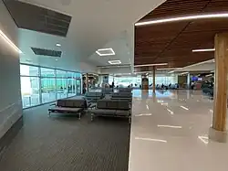The present terminal designed by Brown, Healey, Bock Architects and Planners[7] was dedicated in 1986 with a ceremony that U.S. Secretary of Transportation Elizabeth Dole attended. The Cedar Rapids Airport was renamed The Eastern Iowa Airport in 1997 to reflect its status as a regional airport. In 2008 the airport enplaned and deplaned one million passengers for the first time in its history; it set a record in 2017 with 1,143,335 passengers.[8] In 2019, CID set an all-time record with 1,342,496 passengers served.[9][3]