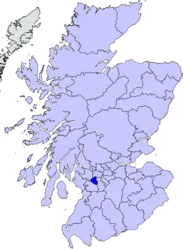 Local government across mainland Scotland was reorganised in 1975 under the Local Government (Scotland) Act 1973, which replaced the counties, burghs and landward districts with a two-tier system comprising upper-tier regions and lower-tier districts. Renfrewshire County Council and the First District Council (which had covered the parishes of Eaglesham, Mearns, and the parts of the parishes of Cathcart and Eastwood outside the borders of Glasgow) were abolished. Eastwood District was created covering the same area as the former First District; it was one of nineteen districts within the Strathclyde region.[1][2]