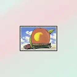 At the time the artwork was finalized, Duane Allman was still alive and the title had not been finalized.[18] As a result, the album lacks a title on the cover, which was an unusual approach for bands at the time. Powell later said, "When we showed it to someone at the label, he said, 'They are so hot right now, we could sell it in a brown paper bag'".[22] Atlantic initially intended to title the album The Kind We Grow in Dixie, the label of the postcard series Powell had seen in Athens,[18] but the band refused. Trucks suggested they name the album Eat a Peach for Peace, after a quote from Duane Allman. When the writer Ellen Mandel asked him what he was doing to help the revolution, he replied: