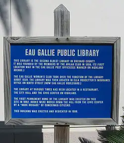 - ^ a b c d e Eau Gallie Public Library Historical marker located at the left side of the Eau Gallie Public Library.