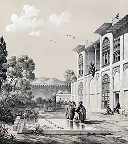 An 1840 drawing by Eugène Flandin of interior view of Arg of Karim Khan.