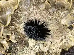 - ^ McClintock, James B. (2019-10-22). "Disappearance of the rock-boring urchin Echinometra lucunter (Echinoidea: Echinodermata) in urchin-burrows along an extensive rock wall of Grotto Beach, San Salvador, Bahamas". Caribbean Journal of Science. 49 (2–3): 290. doi:10.18475/cjos.v49i2.a16. ISSN 0008-6452. S2CID 204811131.