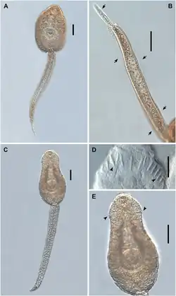 | Two specimens of Echinostoma revolutum, from:[1] | |