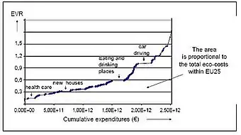 The EVR is also relevant for business strategies, because companies are facing the slow but inevitable internalization of environmental costs. At the moment the costs of products don't take into account the environmental damage caused by these products. This "pollution is for free" mentality is less and less accepted by communities.