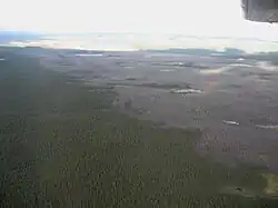 The spruce / moss domain extends to around 52° north. The forest is dominated by black spruce, which is often the only species of tree, but is often accompanied by species such as balsam fir. Hardwoods such as white birch, trembling aspen and sometimes balsam poplar also grow in this area. The ground is covered with hypnaceous mosses and ericaceous shrubs. There are few herbaceous species. Fires are the main factor in forest dynamics, and occur more frequently in the west, which has fewer fir trees than the east.[2]