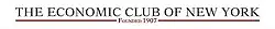 Founded in 1907, the Economic Club of New York is a forum for discussion on a wide range of issues facing New York City, the United States, and the world. The club welcomes preeminent thought leaders from across the globe and from the public and private sectors to speak on complex issues ranging from public policy and economic regulation to tech disruption. Nonpolitical, nonpartisan, and nonprofit, the Club promotes no agenda and takes no sides on issues, encouraging speakers and members to engage openly in thoughtful discussions.[1]