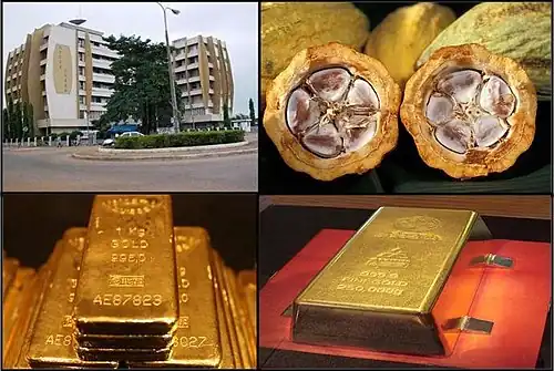Ghana became the largest gold-producing country in Africa after overtaking South Africa in 2019.[25] The country is also the second-largest cocoa producer (after Ivory Coast).[26] Ghana is rich in diamonds, manganese or manganese ore, bauxite, and oil. Most of its debt was cancelled in 2005, but government spending was later allowed to balloon. Coupled with a plunge in oil prices, this led to an economic crisis that forced the government to negotiate a $920 million extended credit facility from the International Monetary Fund (IMF) in April 2015.[27] Bloomberg rated Ghana currency Cedi as the strongest performing currency in the World April 2025 against the Dollar reducing its debt burden.