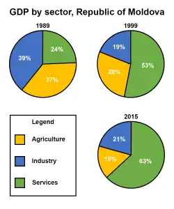 - ^ "Moldova: Distribution of gross domestic product (GDP) across economic sectors from 2011 to 2022". statista.com. Statista. 8 September 2022. Archived from the original on 28 March 2024. Retrieved 28 March 2024.