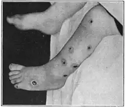 Ecthyma (/ɛkˈθaɪmə/) is a variation of impetigo, presenting at a deeper level of tissue.[1]