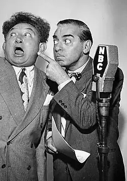 His NBC radio show Time to Smile was broadcast from 1940 to 1946, followed by his Pabst Blue Ribbon Show from 1946 through 1949. The Pabst program ended when the sponsor wanted Cantor to add a weekly television program. Cantor refused to take on the additional broadcast. The trade publication Billboard reported that Cantor and Pabst "parted friends" after "several months of negotiation."[14] He also served as emcee of Take It or Leave It during 1949–1950, and hosted a weekly disc jockey program for Philip Morris during the 1952–1953 season. In addition to film and radio, Cantor recorded for Hit of the Week Records, then again for Columbia, for Banner and Decca and various small labels.