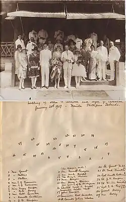 - ^ Edgar and Helen Crossman, Malacañan Palace, Manila on January 21, 1929. U.S. Government Photograph. A clearer version of this photograph can be found in "The Distinguished Career of Henry L. Stimson," Life Magazine, August 3, 1943, p. 85. Participants in the Photograph Left to Right are: First Row: Mrs. Grant, Mrs. Bellas, Mr. Bellas, Mrs. E.G. Crossman, Mr. E.G. Crossman, Miss Peggy Kemper. Second Row: Miss Dodo Dorey, Mrs. Robert Lavender, Mrs. Kenneth G. Castleman, Mrs. J.B. Kemper, Honorable Manuel Quezon, President, Philippine Senate, Mrs. Mark Bristol, Mrs. Henry L. Stimson, Madame Mrs. Quezon, Honorable Henry L. Stimson, Governor General of the Philippines, Admiral Mark Lambert Bristol U.S.N., Commander Asiatic Fleet. Third Row: Mr. John Kemper, Commander Robert Lavender, U.S.N., Lieutenant Commander Charles Julian Wheeler, U.S.N., Lieutenant Grant, U.S.A., Lieutenant Ford Trimble, U.S.A., Captain Kenneth G. Castleman, U.S.N., Colonel J. B. Kemper U.S.A., Colonel Blanton Winshp, U.S.A., Captain E.A. Regnier, U.S.A., Brigadier General Halstead Dorey U.S.A. and Mrs. Dorey.