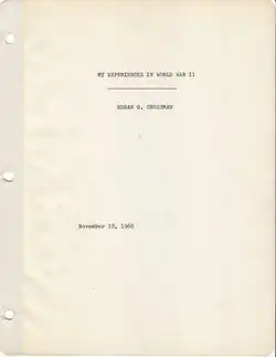 - ^ Edgar Crossman, U.S. Army Personnel Record., op. cit., Asia-Pacific Campaign Medal w/ 3 bronze stars (Campaigns: New Guinea, Southern and Northern Philippines).