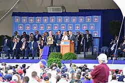 First eligible to be elected into the Hall of Fame in the 2010 Baseball Hall of Fame balloting, and with 75% of the vote required for induction, Martínez received 36.2% of the vote. While some sports writers felt that his batting numbers do not overcome the one-dimensional aspect of his career as a DH, others have compared this to the specialty of closers whose contribution to their teams victories resides on working one inning to preserve an advantage and the fact that these late inning relievers are not involved in other facets of the game such as hitting and base running.[48] By the 2018 Baseball Hall of Fame balloting, his ninth year on the ballot, Martínez's vote total increased to 70.4%. The 2019 ballot, his last chance for election by the Baseball Writers' Association of America, elected him to the Hall of Fame, appearing on 85.4% of the ballots cast.[49][50] He became the second player to enter the Hall of Fame as a Mariner, after Ken Griffey Jr.,[51] and the sixth player to be elected in his final year of eligibility, after Red Ruffing, Joe Medwick, Ralph Kiner, Jim Rice, and Tim Raines.[52] He entered the Hall with the aforementioned Rivera, who was elected in his 1st year of eligibility, along with the late Roy Halladay (1st ballot, posthumous).[49] A statue of Martínez was installed outside Seattle's T-Mobile Park in 2021.