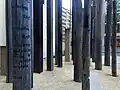 The 29 vertical poles correspond to the 29 Aboriginal clans from around Sydney. As the work is designed not to be viewed from a distance but experienced up close as part of the sensual and spatial encounter, the audience are invited to touch and run their fingers along the engraved names and to feel the textures of the different materials. Walking between the pillars you hear a soundscape of Koori voices reciting the names of places in the Sydney region that have today been swallowed up by the metropolis. This is also a way to celebrate the moment in time.[4][5]