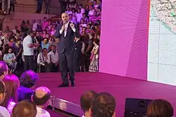 In 2013, the Socialist Party of Rama led the coalition of center-left parties (that included his former opponents, the SMI) into a landslide victory in the parliamentary election defeating the center-right coalition led by Prime Minister Sali Berisha. His platform, nicknamed "Renaissance"[25] was based on four pillars: European integration, economic revitalisation, restoration of the public order and democratisation of the state institutions. Since September 2013, Rama has been serving as the Prime Minister of Albania.[26]