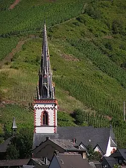 Even older traces of settlement – remnants of a stone wall of a flight castle from Celtic times – can be found on the Hochkessel, the mountain on the other side of the Moselle. On the side of the Moselle facing towards the Hunsrück is a Roman-Gaulish burying ground near Saint Peter's Chapel (Peters-Kapelle) in Neef.