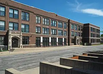 The school opened in 1922.[4] Additions have been made to the rear of the building, and a gymnasium was built across Monroe Street. The track and football field are behind this gym, and the school's baseball/softball field is in adjacent Jackson Square Park.