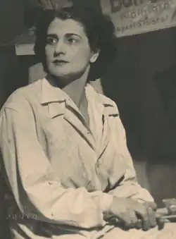 Edith Bán Kiss (also Edit, née Rott 1905 – 27 October 1966) was a Hungarian sculptor and painter. In the autumn of 1944, she was deported to the Ravensbrück concentration camp in northern Germany and then transferred to the Daimler-Benz factory at Ludwigsfelde where she was forced to work on aircraft engines for the Luftwaffe. Shortly after her release at the end of the war, she illustrated her experiences of concentration camps with 30 gouache sketches which were exhibited in Budapest in late 1945.[1] There was however little recognition of her work in the West. As a result, following the death of her husband she committed suicide in Paris in 1966. In 1992, her Deportation series was exhibited in Berlin, Paris and Budapest.[2][3]