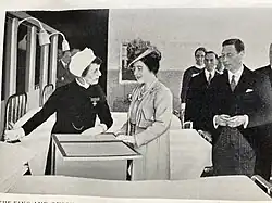 Matron Edith Smith (on left) showing a ward to Queen Elizabeth and King George VI at the opening of the new Westminster Hospital in 1939 .