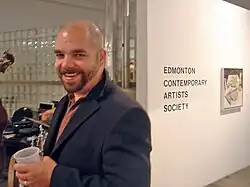 The Edmonton Contemporary Artists' Society was formed in 1993 by a group of abstract artists working in Edmonton, Alberta. Founding artists include sculptor Peter Hide and painters, Terrence Keller,[3] Robert Scott, Mitchel Smith and Graham Peacock.[1][4] The group formed in order that contemporary art in Edmonton would be seen annually in light of a decline in possibility for exposure by the City and Provincial galleries. The inaugural ECAS exhibition was held at the City Centre Building in Edmonton.[5] ECAS formerly published a newsletter which featured "an interview with an artist, critic or collector" in each issue, including such notable figures such as Clement Greenberg.[6] The society's 15th annual show, in 2007, was hailed as one of their most diverse and successful exhibitions.[7]
