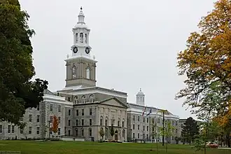 Edmund B. Hayes Hall is a historic building on the South Campus of the University at Buffalo. It is a Georgian Revival style building with an attached bell tower. It is named after engineer and businessman Edmund B. Hayes whose bequest funded the remodeling of the facility for university use.[1]