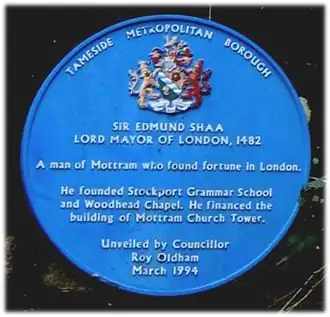 - ^ a b c "Sir Edmund Shaa – Blue Plaque". Tameside MBC webpages. Tameside MBC. Archived from the original on 30 August 2006. Retrieved 22 October 2006.