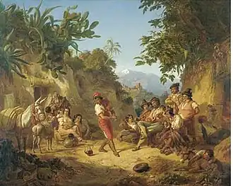 Following graduation, he embarked on the "Grand Tour", beginning with Paris. While there, he took evening classes from Paul Delaroche and made copies at the Louvre. In 1842, he took part in an exhibition at the Salon. Following that, he visited Switzerland and Northern Italy, finally making his way to Rome, where he spent a year and a half, making sketches and studying the sculptures. He also worked as a portraitist, receiving orders from King Ludwwig I and Prince Henry of Prussia. After leaving Rome, he toured Spain and visited Morocco. While in Madrid, he became acquainted with José de Madrazo, Director of the Museo del Prado.
