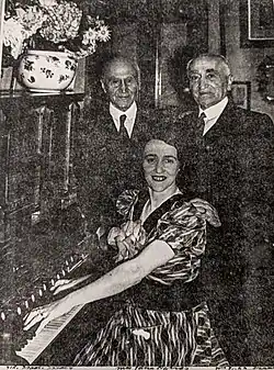 In 1938 Davis married her first husband John Isaacs, brother of Sir Isaac Isaacs, the former Governor-General and Chief Justice of Australia.[1] John was a solicitor and forty-four years her senior; undoubtedly captivated by her vivacity.[3] However their marriage was a tumultuous one, with Davis' hectic social calendar and frequent outbursts interfering with the quieter life appreciated by the older Isaacs.[3] Their final dispute was over John secretly changing the sole ownership of his house to a joint tenancy with his brother, which meant she wouldn't inherit the house upon his death.[3] She left the house the next day.[3]