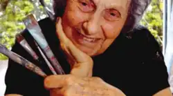 Edna Hibel[1] was born on January 13, 1917, in Brookline, Massachusetts.[2] Her parents were Jewish immigrants from Poland.[3] She began to study watercolors when she was nine years old.[4] According to her son, Hibel began painting after she finished her math schoolwork early.[1] Hibel graduated from Brookline High School and enrolled at the Boston Museum School of Fine Arts, which she graduated from in 1939.[4][1] She also studied in Mexico on a fellowship.[1]