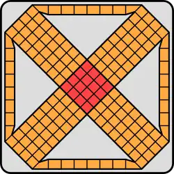 The game is played on a cloth board with "a parti-colored diagram with four arms each having four rows of eight squares, each connected at the ends by a diagonal row of eight squares, the whole forming an octagonal figure." The central area of 16 squares is designated the serai.[1] Each player has three cowrie shells as pieces, one of which is designated the "chief" and the remaining two the "soldiers"; four more cowries are thrown to determine movement, but Culin did not describe how that was determined.[1]